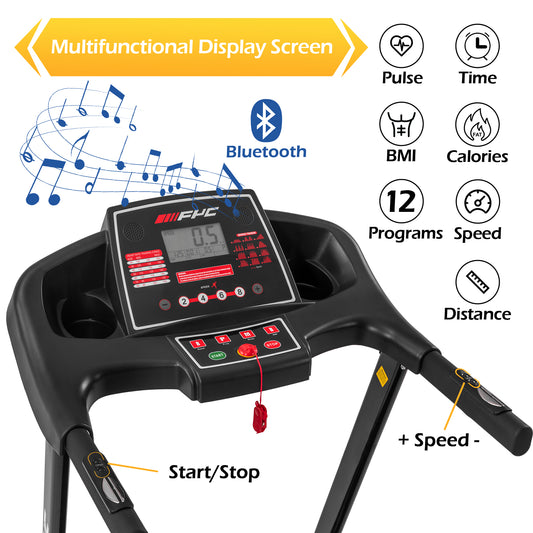 FYC Folding Treadmill with Auto Incline - 3.5HP 330LBS Weight Capacity Foldable E with Bluetooth (JK8801F)