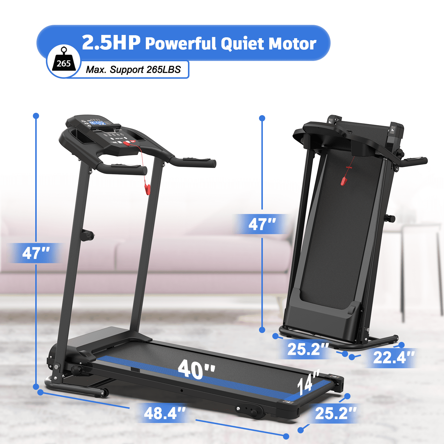 Upgrade your fitness routine with the FYC Foldable Portable Treadmill, a top choice for those seeking electric treadmills for home use. This compact treadmill features a powerful 2.5HP brushless motor, supporting up to 300 lbs and reaching speeds up to 6 mph, making it ideal for users of all fitness levels. The treadmill portable design is perfect for small spaces, easily folding for convenient storage. Enjoy a personalized workout experience with the Fitshow app, offering 107 training courses, 20 outdoor scenes, and 62 virtual tracks, making it a versatile running machine for home. The anti-slip shock absorption system, with 6 spring shock absorbers and double rubber pads, helps protect your joints during every session. Whether you’re looking for folding treadmills 300lbs, indoor treadmills, or a caminadora-portatil, this model delivers reliable performance. The FYC Foldable Portable Treadmill is designed for energy and endurance goals, backed by a 1-year warranty and 24/7 customer support, making it a smart addition to any home gym or office. Enjoy the benefits of a treadmill fir youth and adults alike, with easy app control and a sturdy, space-saving build.
