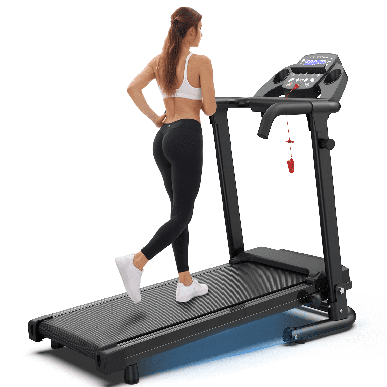 The FLIMDER Foldable Portable Treadmill is a compact and versatile home fitness solution. With a 300 lb capacity and 2.5 HP motor, it offers a smooth and powerful walking experience. The treadmill features 12 pre-programmed workouts, a speed range of 0.5-6 mph, and convenient app control for easy customization. Its foldable design makes it easy to store and transport, making it an ideal choice for home or office use.
