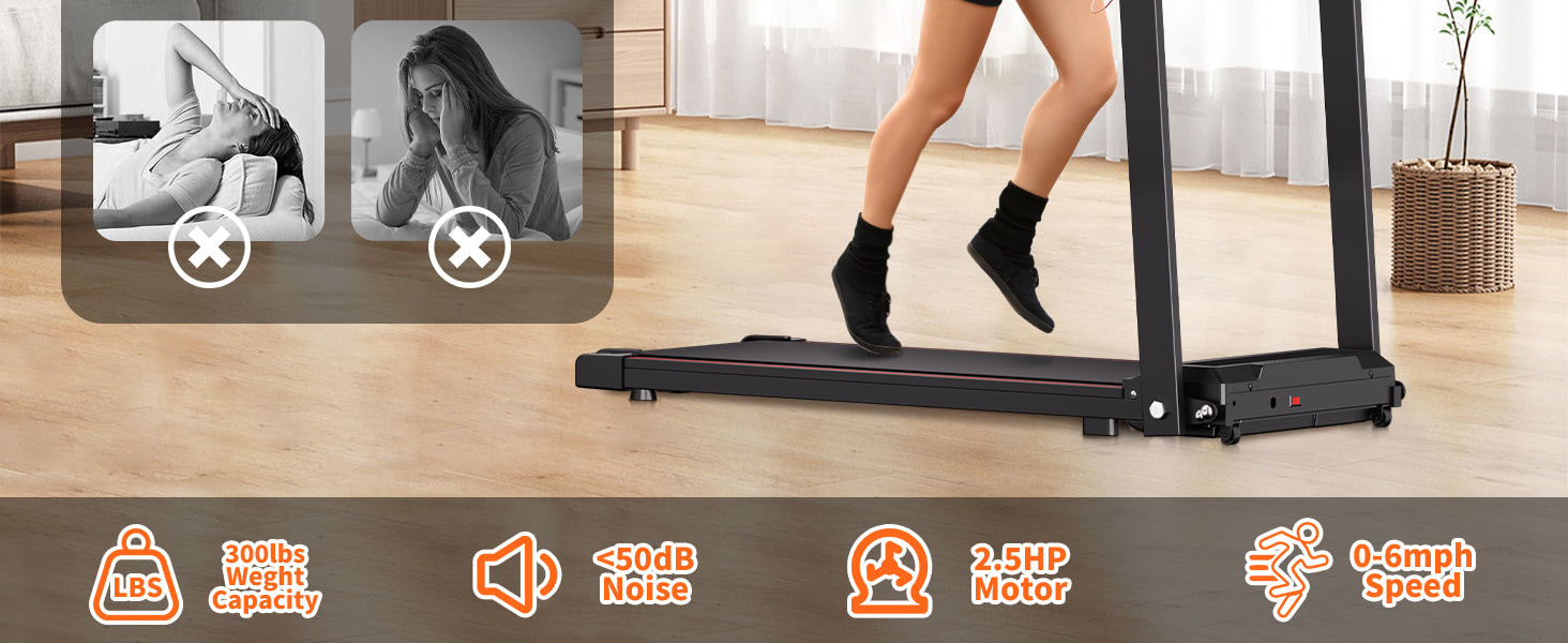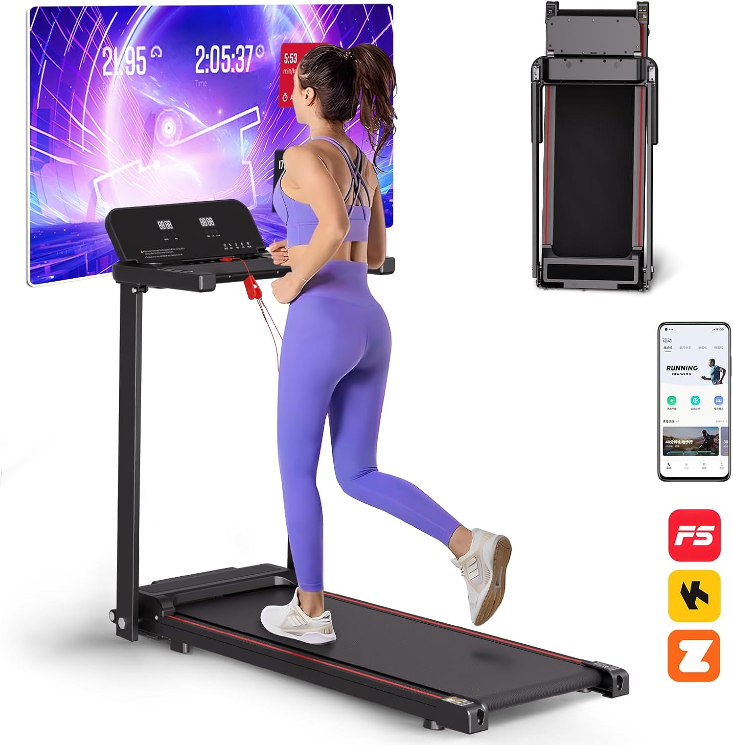 Foldable Treadmill with Handles Treadmills for Home Small Spaces 2.5HP Folding Treadmills Walking Pad Treadmill with Handle Bar Quiet Walking Machine, 300LBS Capacity, Portable Small Home Gym (Black)