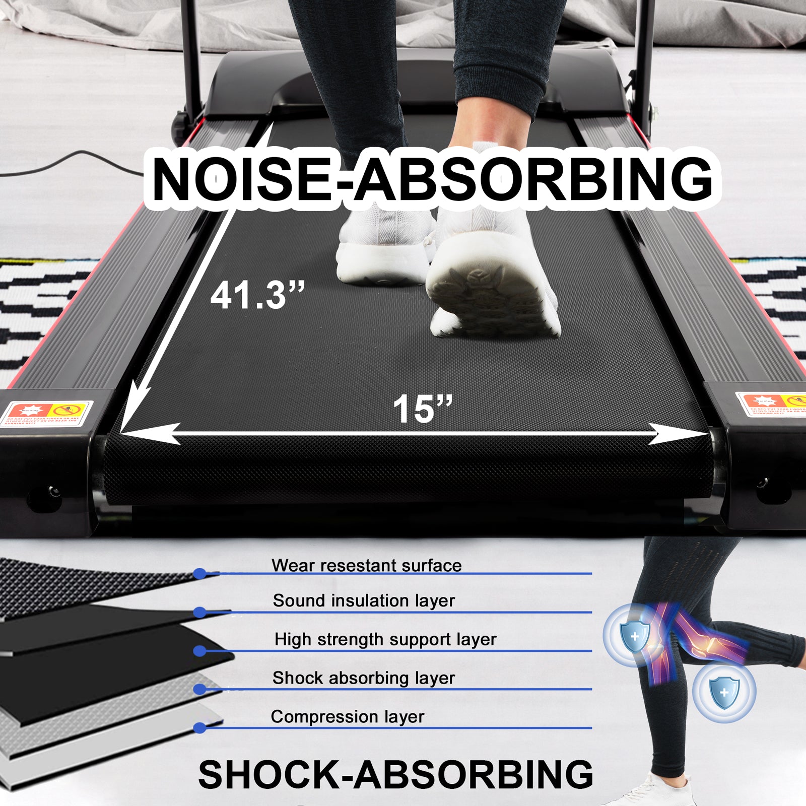 - 👍【Low Noise Motor & Spacious Exercise Surface】The 2.5HP motor ensures perfect performance for walking, jogging, running, and cardio workout at home, providing you safe and quiet workout experience. 41.3"L x15"W running belt provides you more comfortable and sturdy workout experience.
