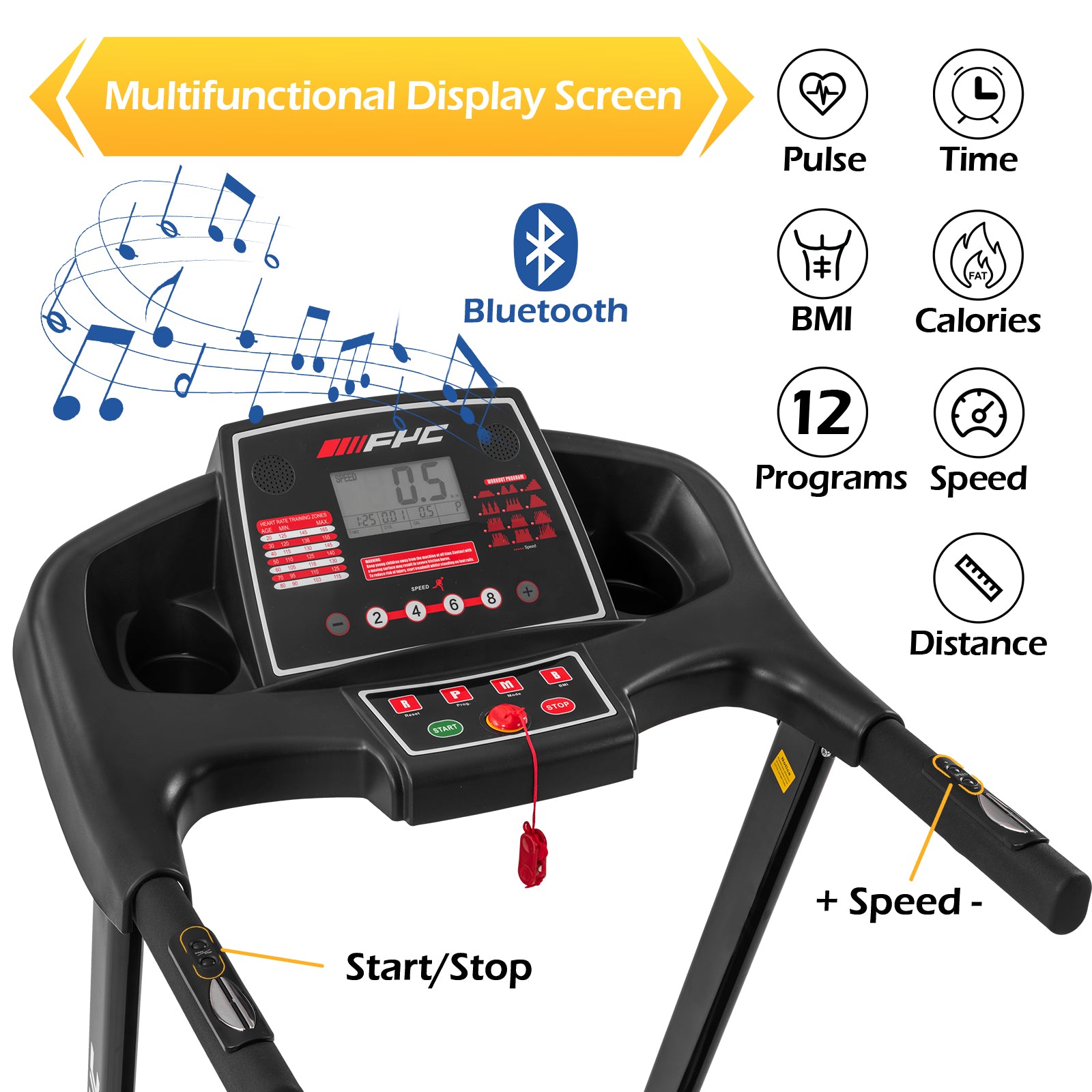 • ✅Multifunctional Display: Time, Speed, Distance, Calories, Heart Rate