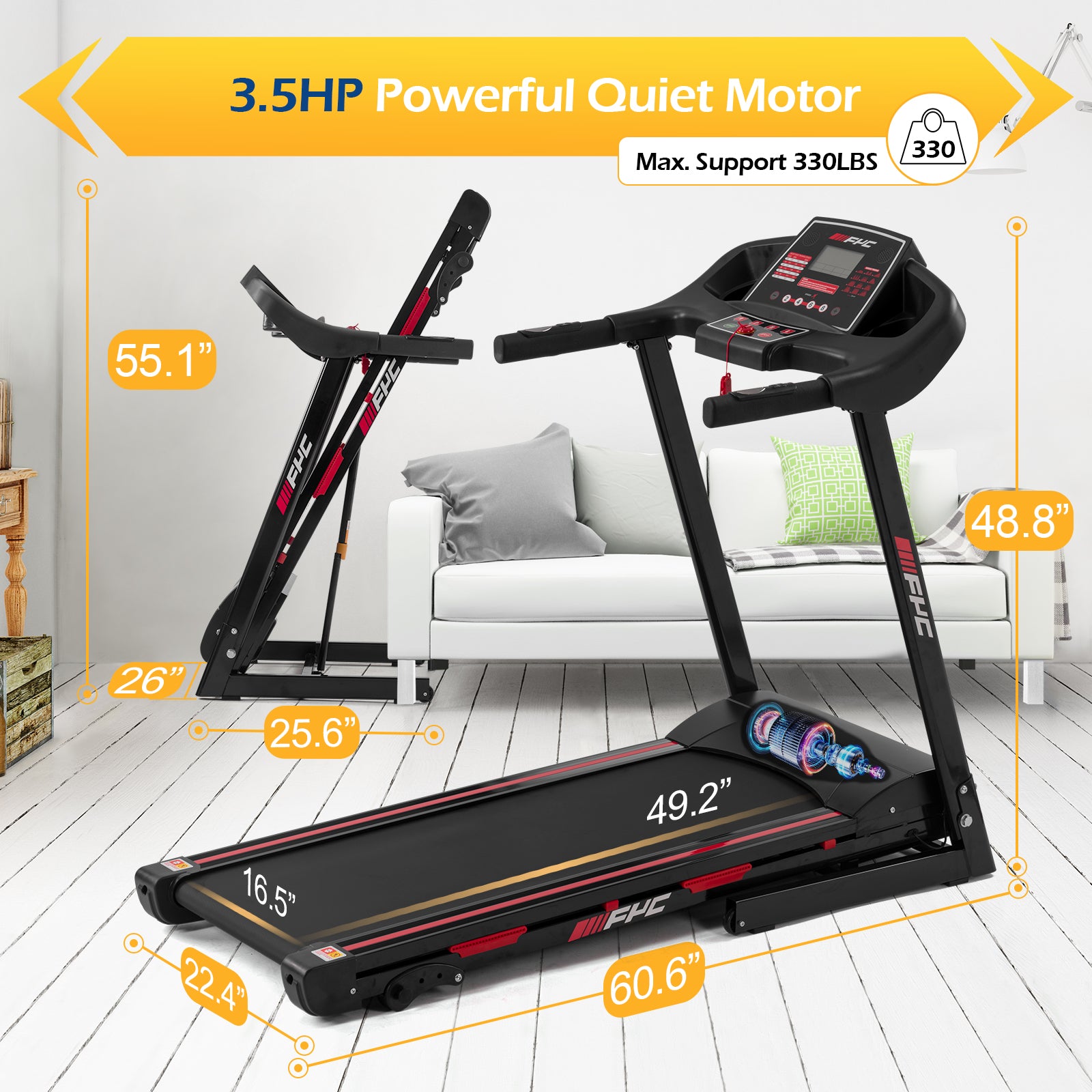 FYC Folding Treadmill for Home - 330 LBS Weight Capacity with Incline/Bluetooth (JK88)