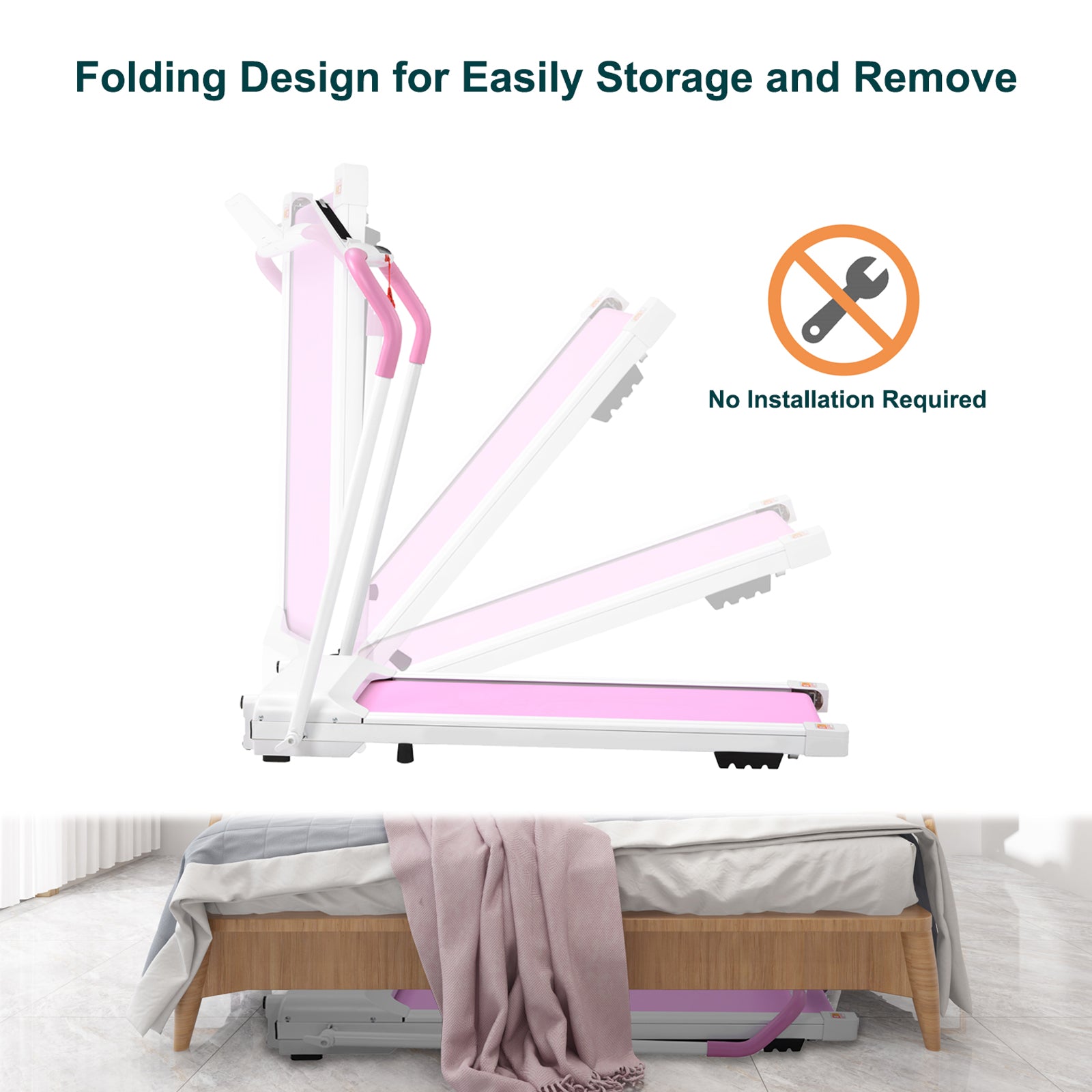 - 【Simple & Spacesaver Design】This folding treadmill for home does not require any screws when you install it. It will be very convenient that you just need to rotate the knob. It can be placed under the sofa, corner or under the bed, reducing the floor space and making it ideal for any room.