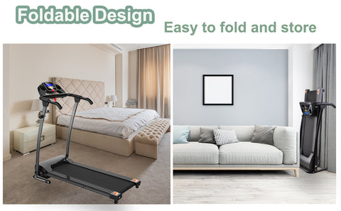 - 【Foldable Design & Transportation Wheels】This portable treadmill boasts a compact footprint and fast folding design with convenient transportation wheels to move around without hassle. You can either store it in your living room, study, any small corner of home. Please contact us first if you have any installation and using questions.