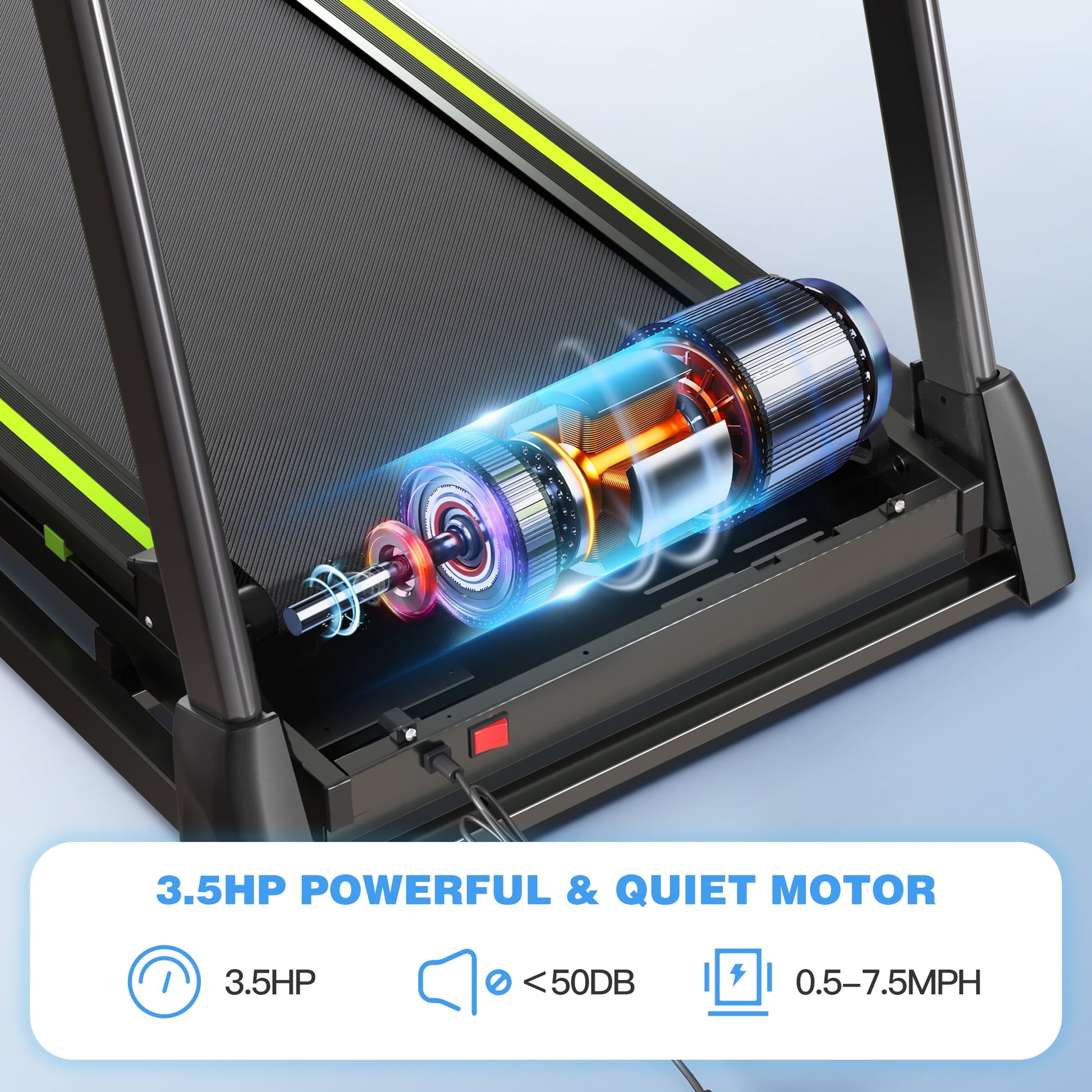 FYC Folding Treadmill for Home with Incline / Bluetooth, 3.5HP 330lb Weight Capacity Portable Electric Treadmill for Home Gym Exercise Running Walking Easy Assembly Green