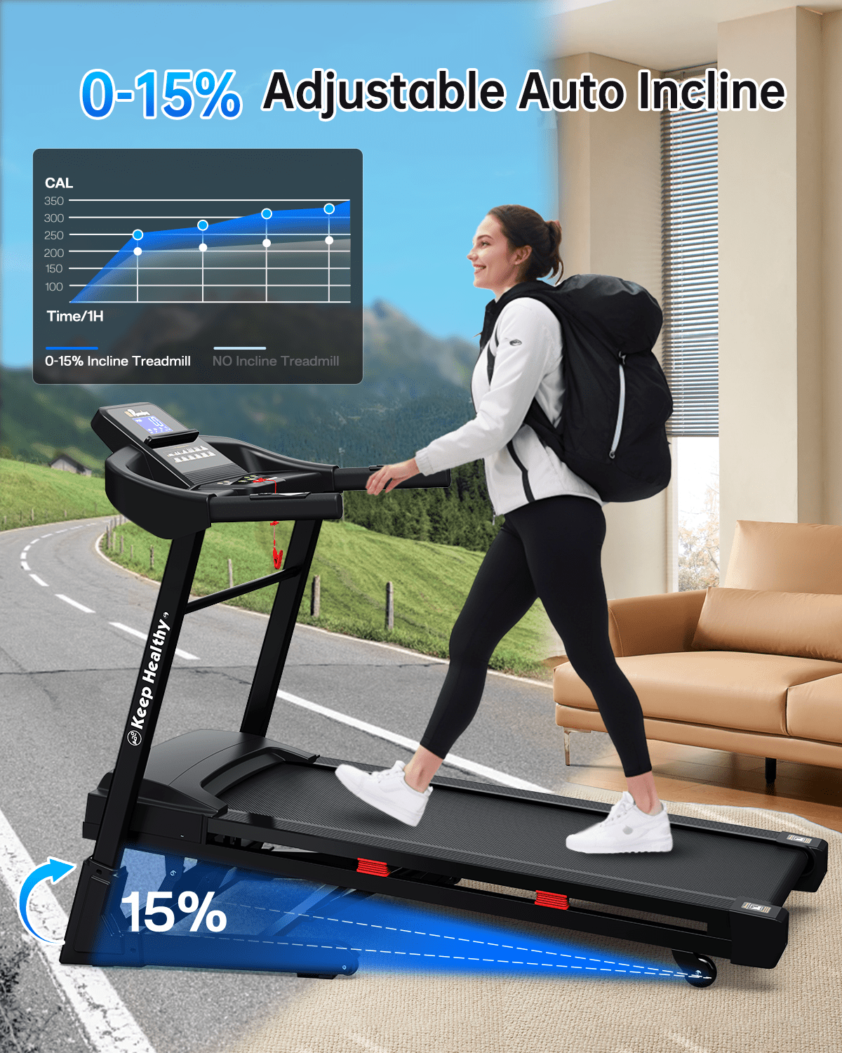 FYC Folding Treadmill for Home with Incline / Bluetooth, 3.5HP 330lb Weight Capacity Portable Electric Treadmill for Home Gym Exercise Running Walking Easy Assembly, 12 Preset Programs, 0.5-8.5 mph